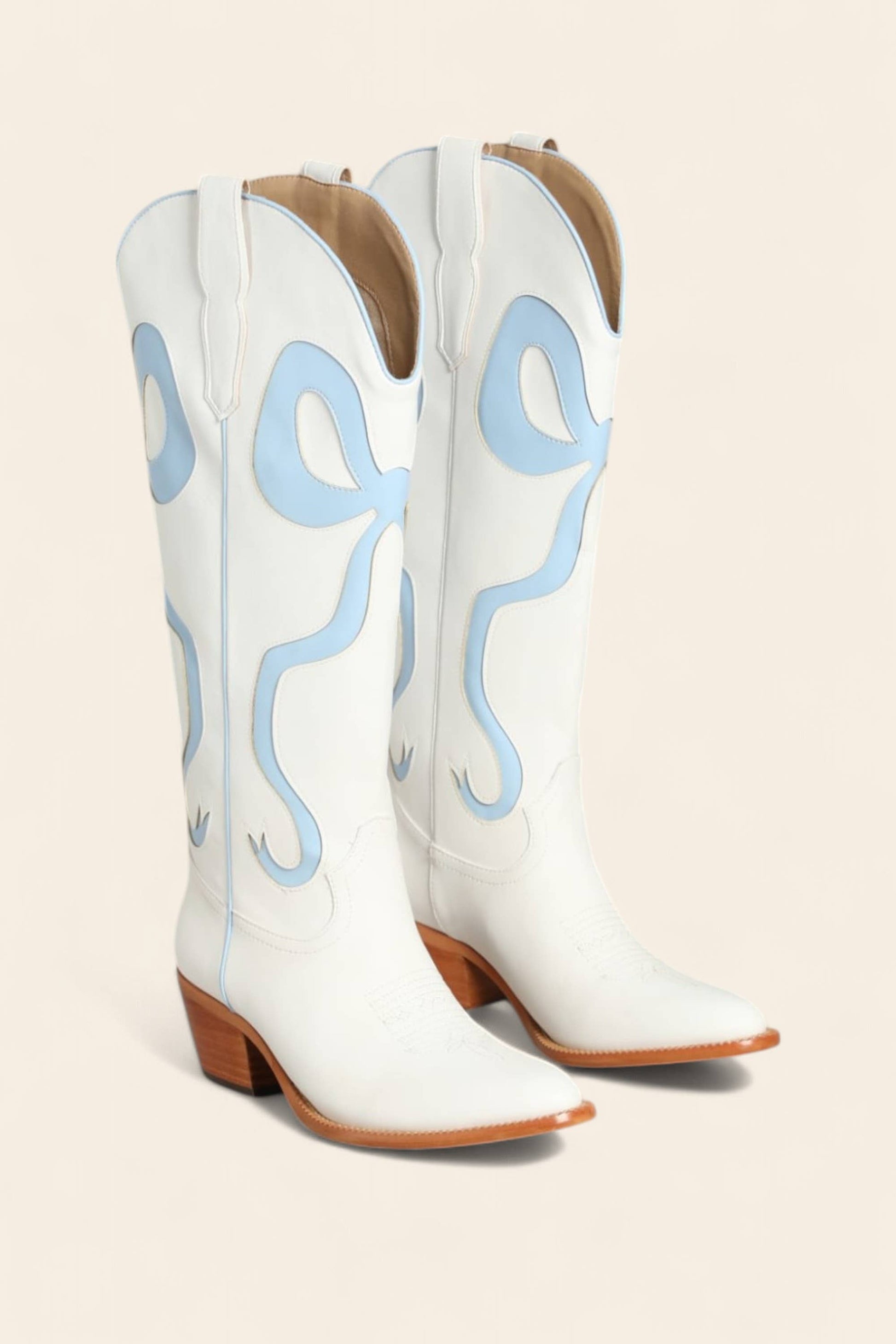 RUBY BOW SWIRLING PATTERNED WESTERN BOOTS: WHITE/ LIGHT BLUE / B12