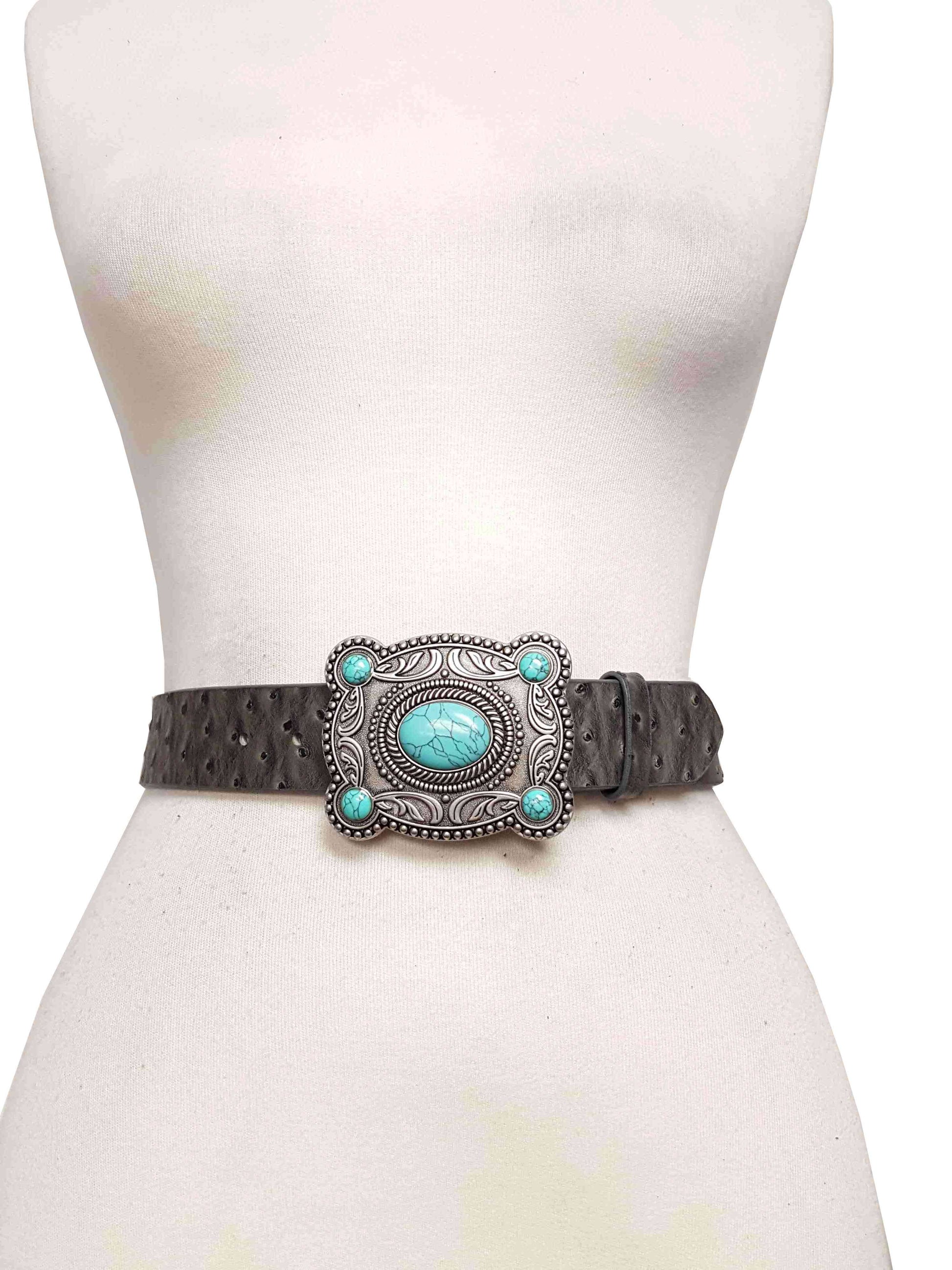 Matte Silver Buckle with real stones. Dimension of buckle is 3.4" x 2.8"