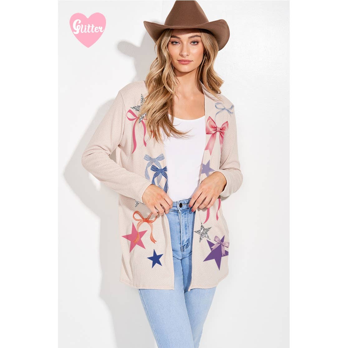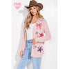-Bow star lovely print knit long sleeve cardigan