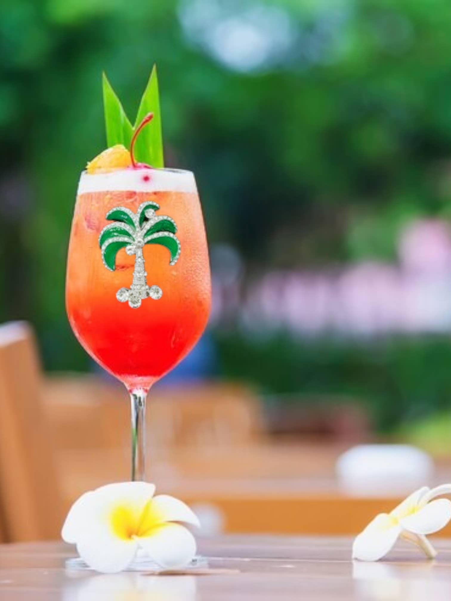 Green Diamond Palm Tree Jeweled Stemmed Wine Glass
