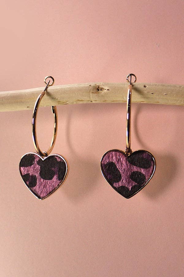 A fun hoop earring with a faux fur animal print heart charm. Size + Fit Diameter: 1.25 " Decor: 1"
