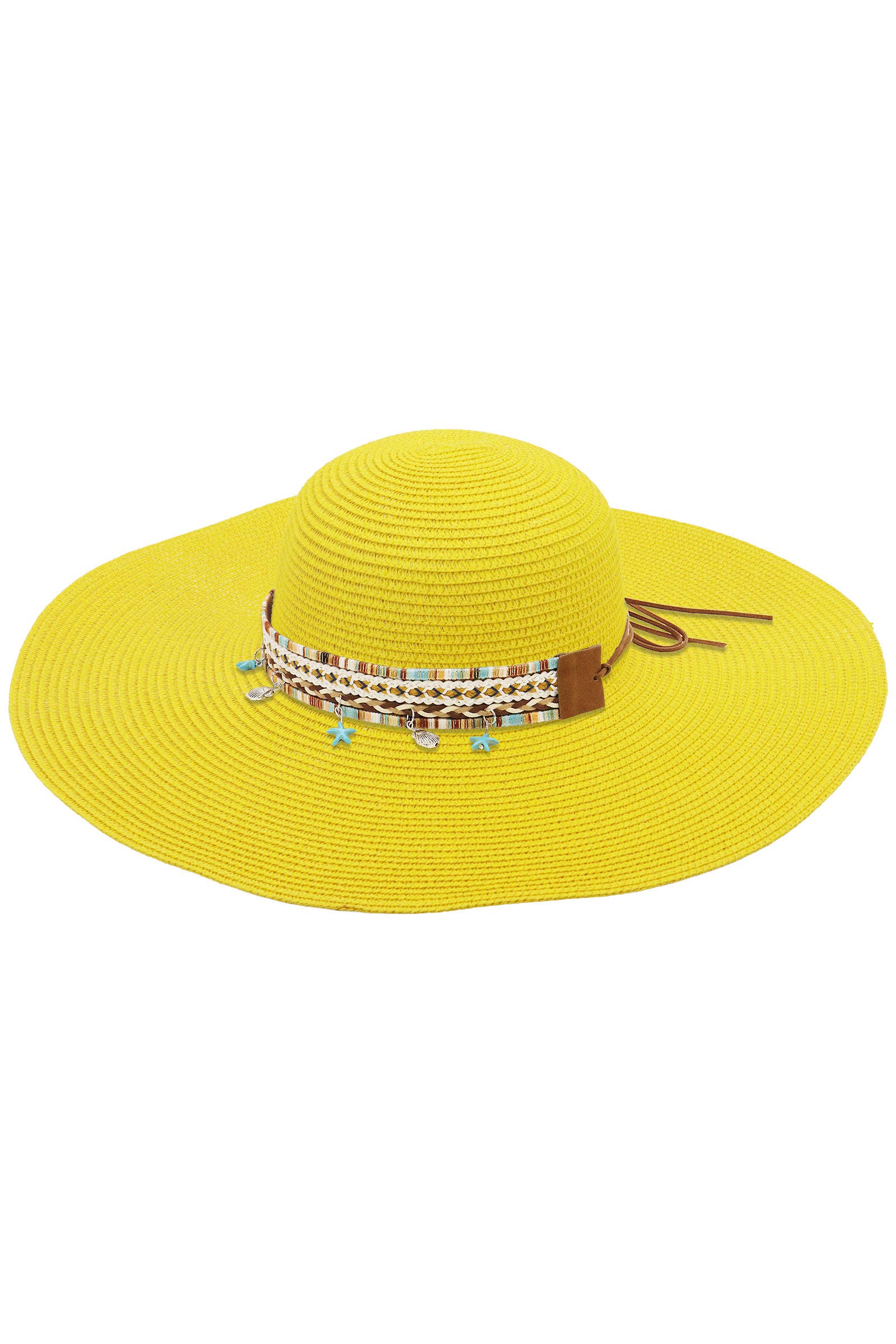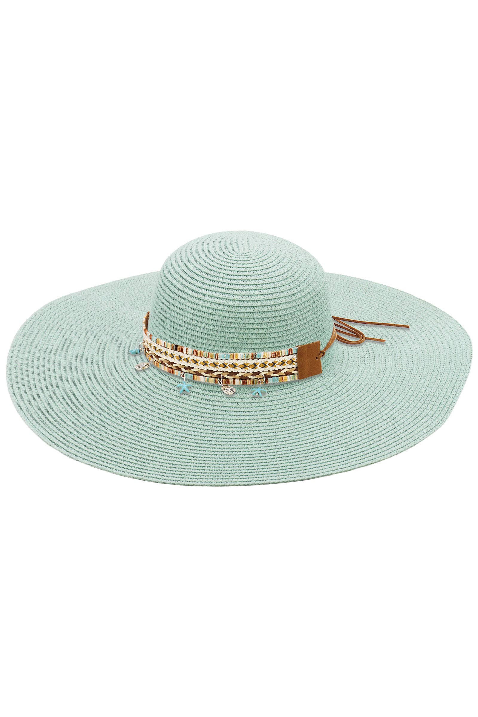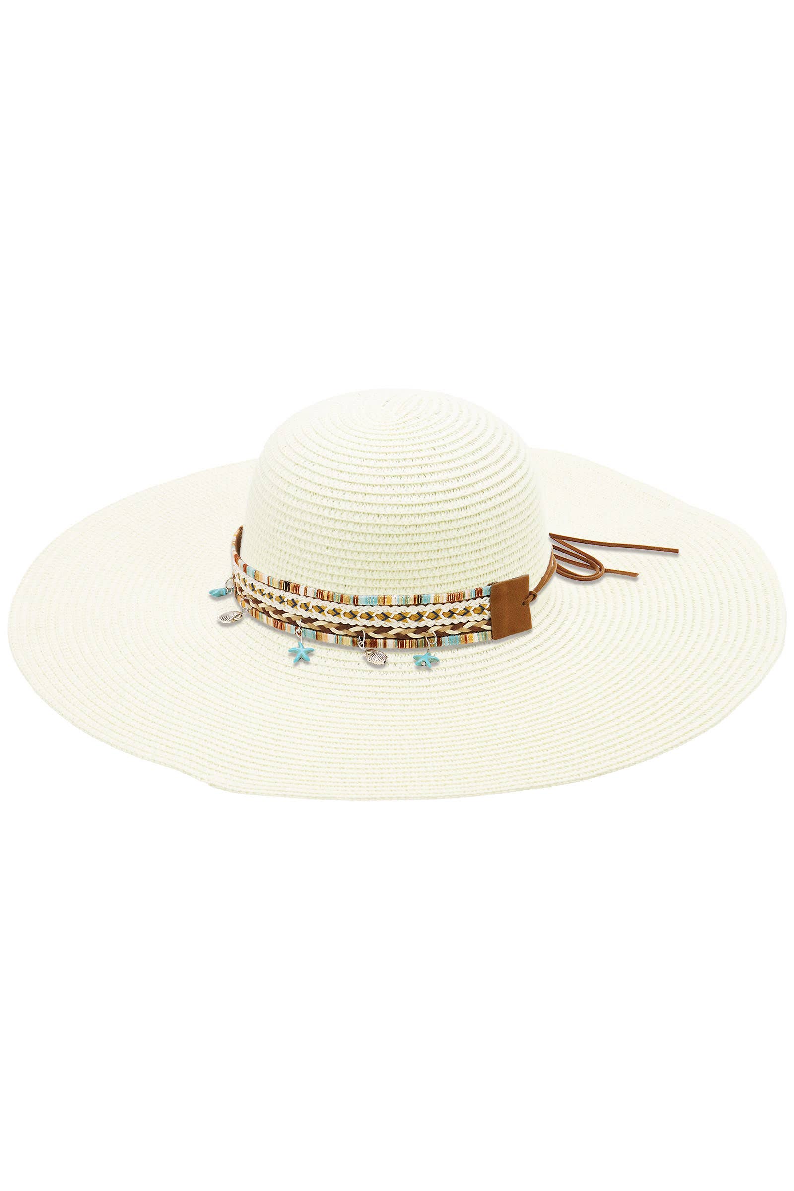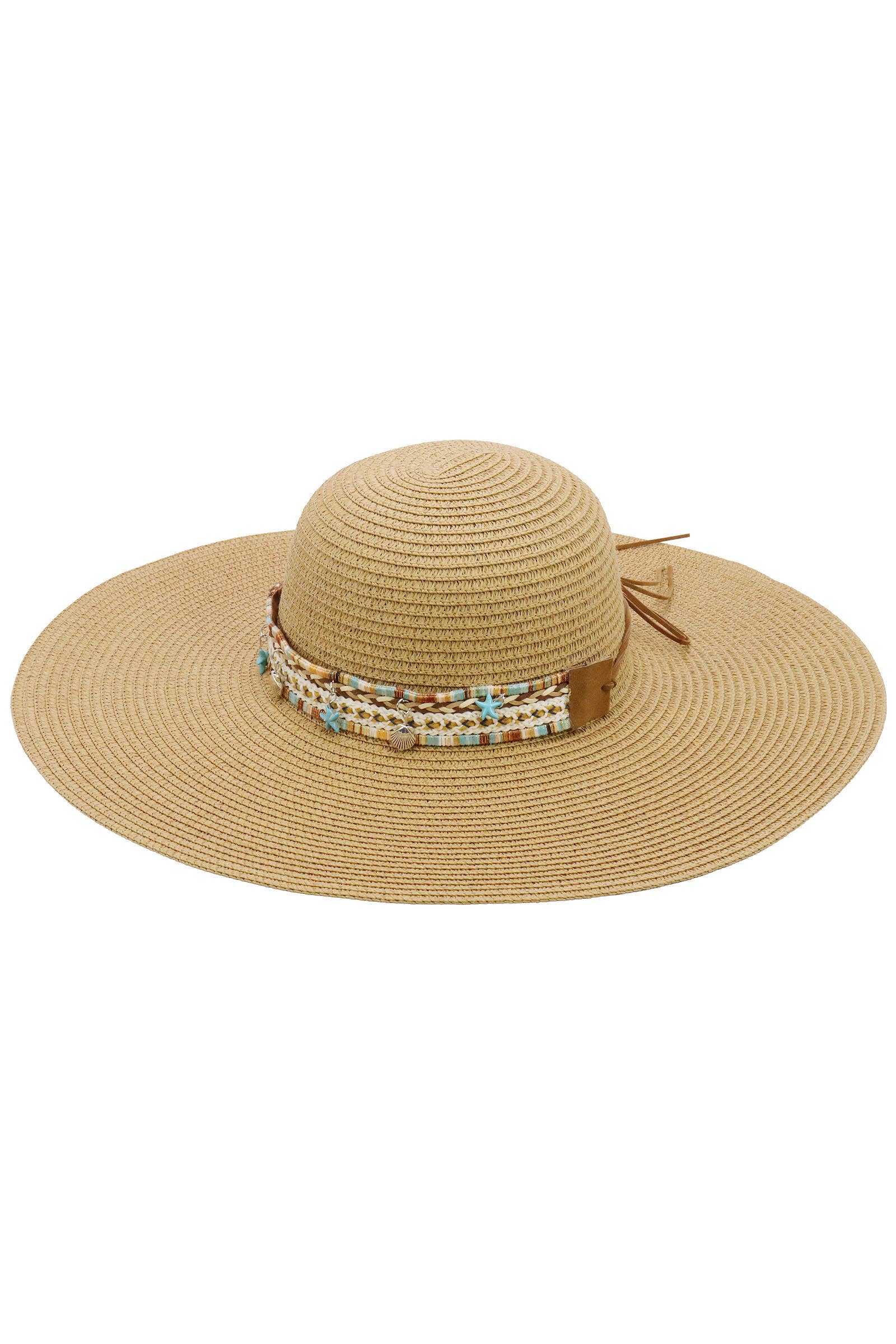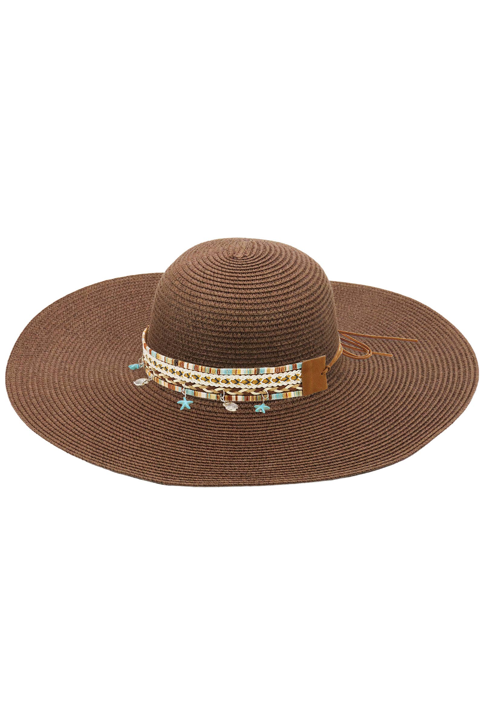 Boho Coastal Tribal Woven Band Light-Weight Wide Floppy Brim Paper Straw Beach Sun Hat