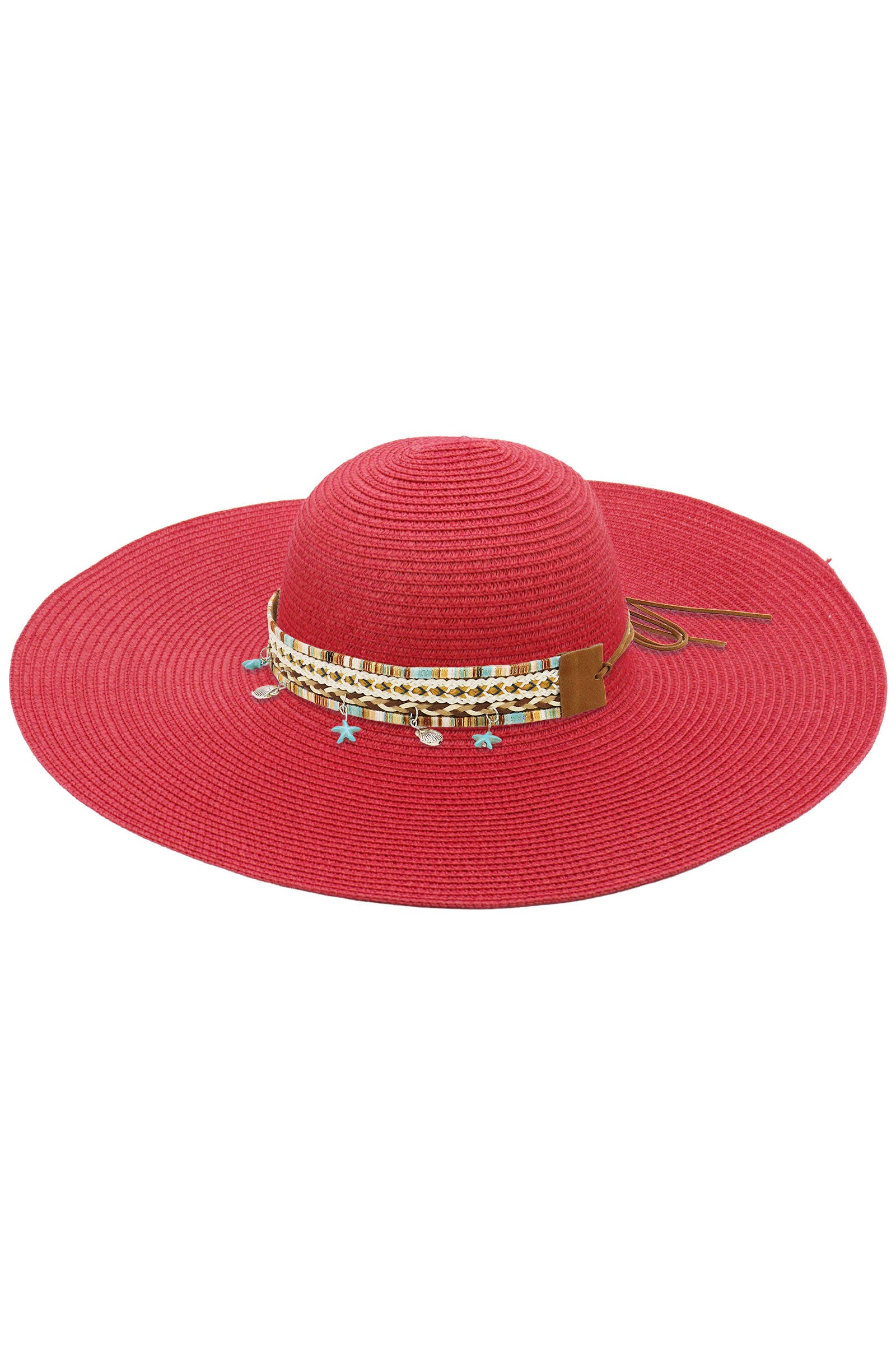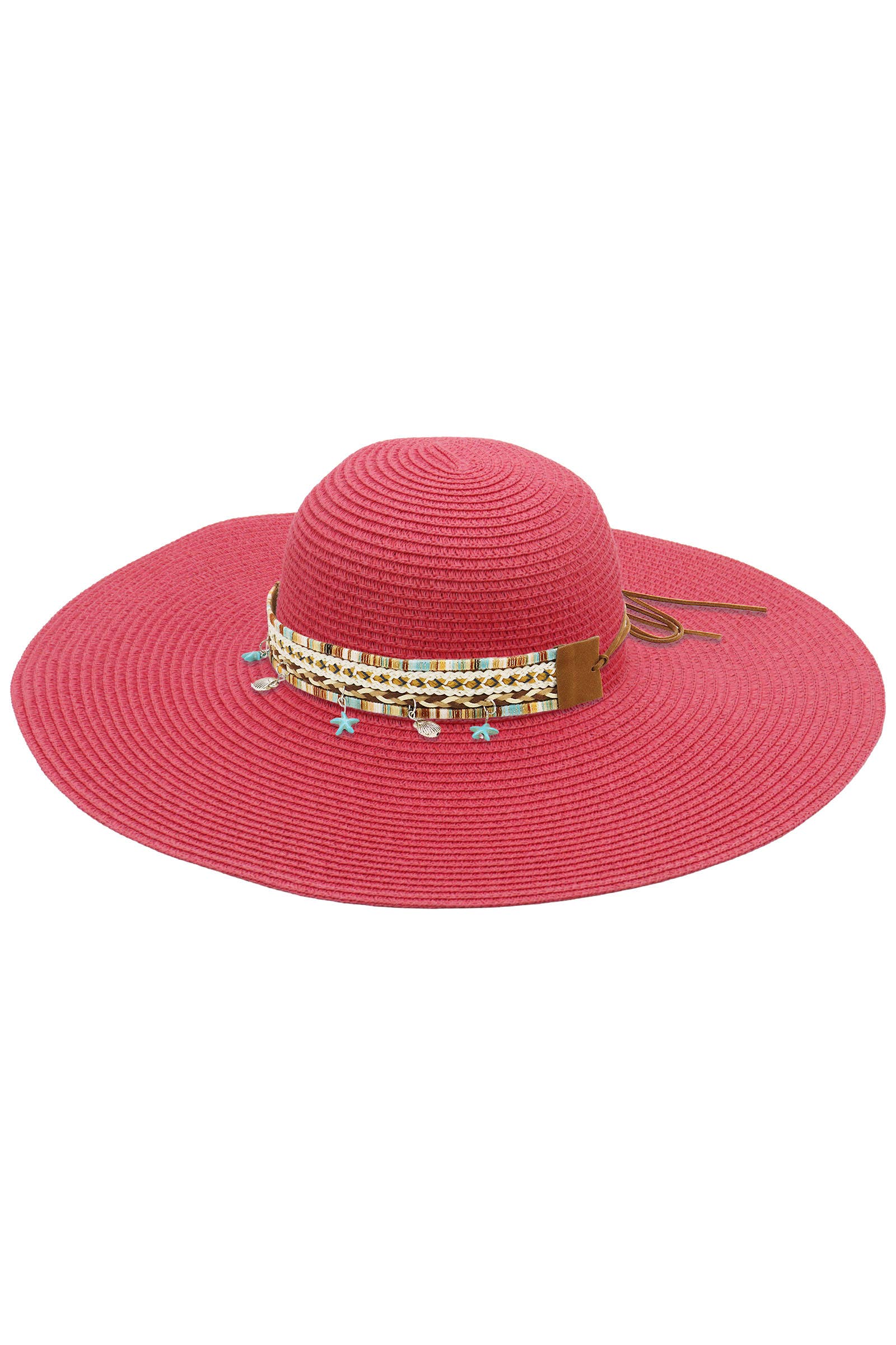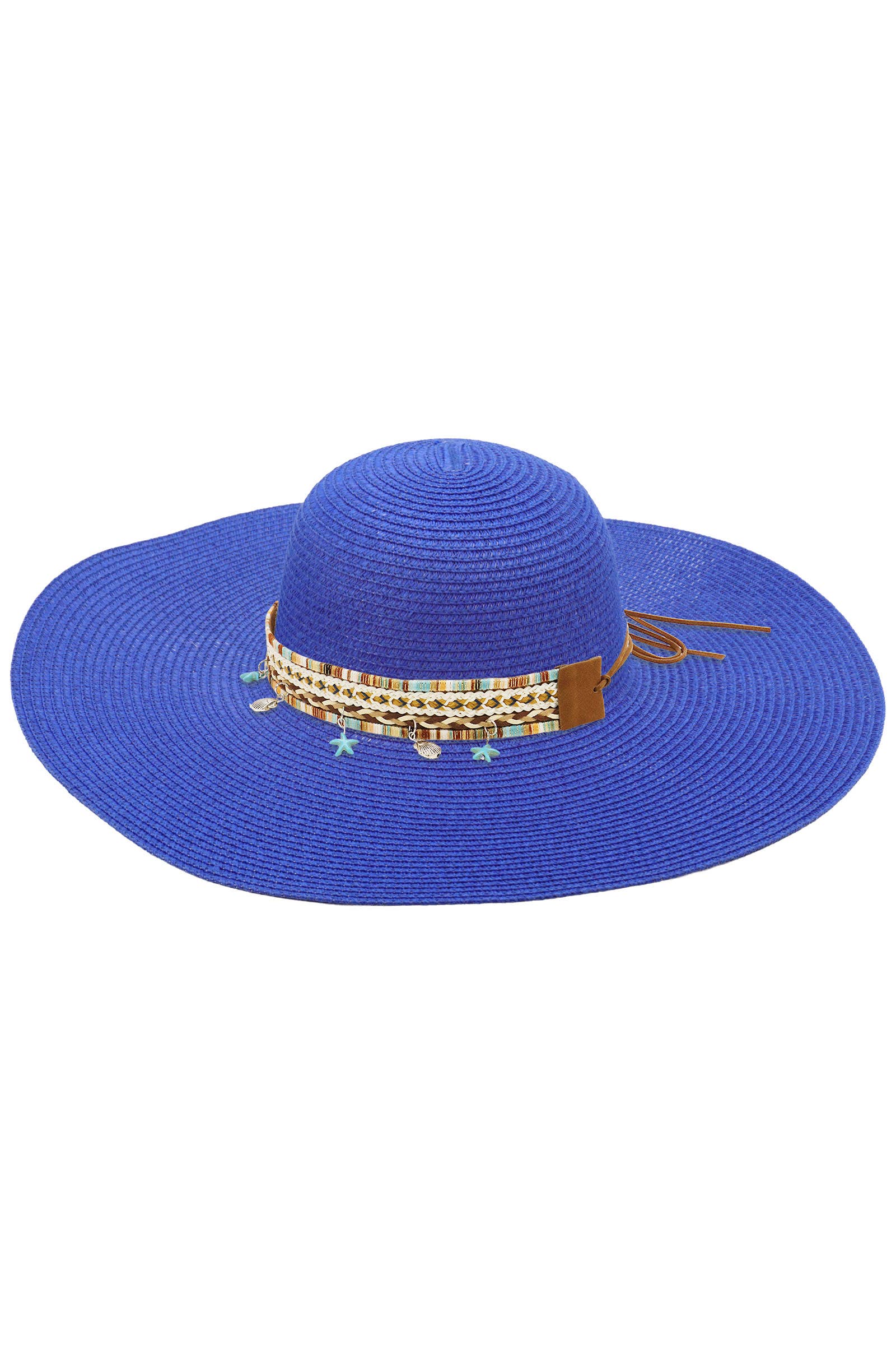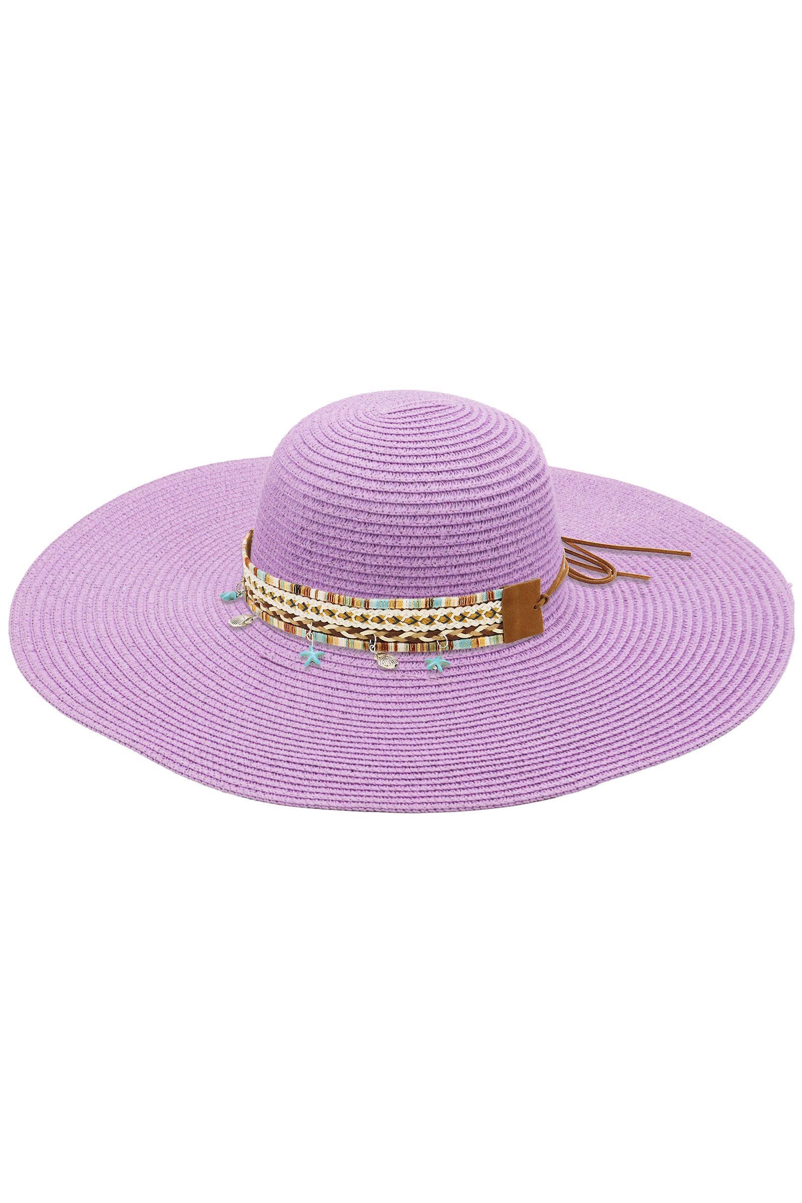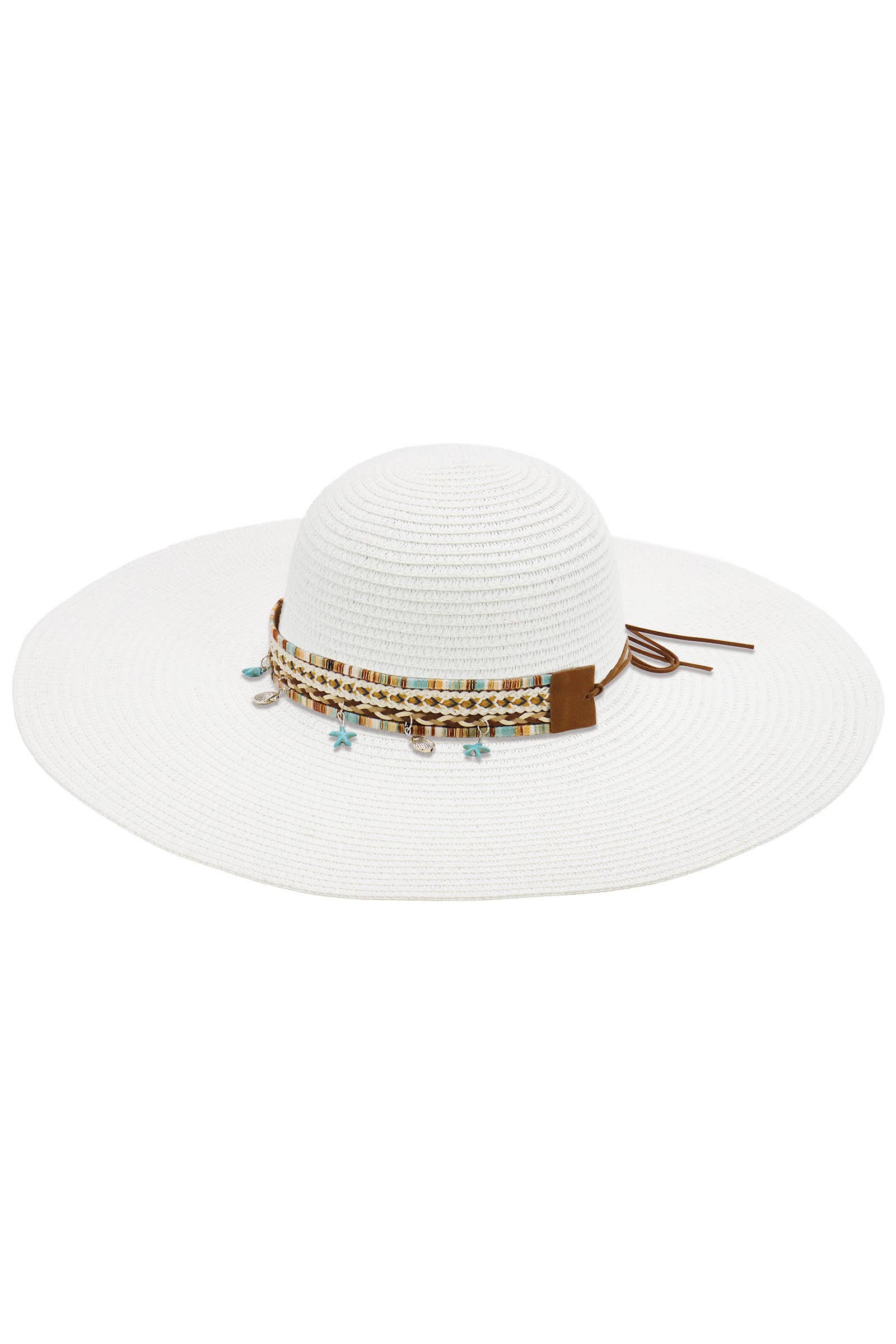 Boho Coastal Tribal Woven Band Light-Weight Wide Floppy Brim Paper Straw Beach Sun Hat