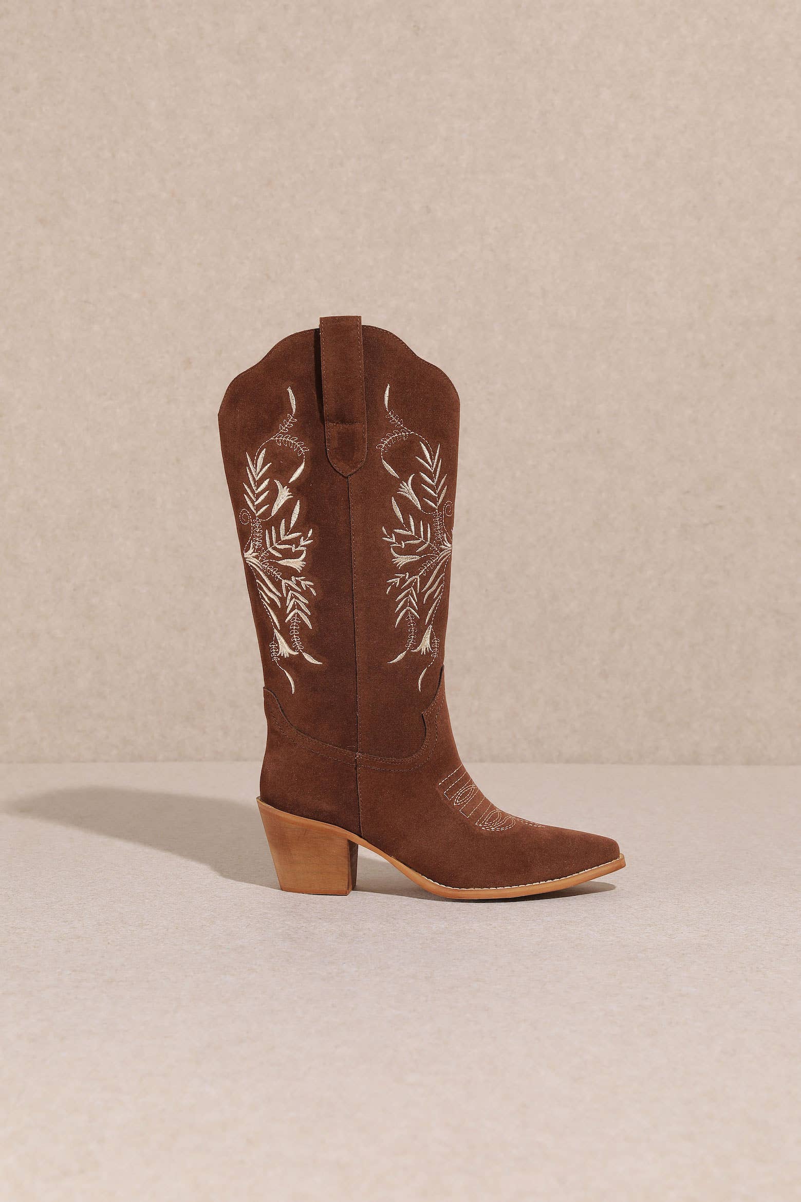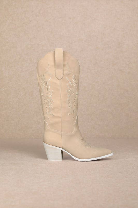 Elevate your footwear collection with the FLORA - Floral Embroidered Western Boots. Crafted from durable leather and suede, these boots showcase a classic cowboy silhouette adorned with intricate floral embroidery. Perfect for a variety of looks, pair them with jeans and a t-shirt for a relaxed, casual vibe or dress them up with a skirt for a stylish evening out. These versatile boots blend traditional Western charm with a touch of feminine flair, making them a standout addition to any outfit.