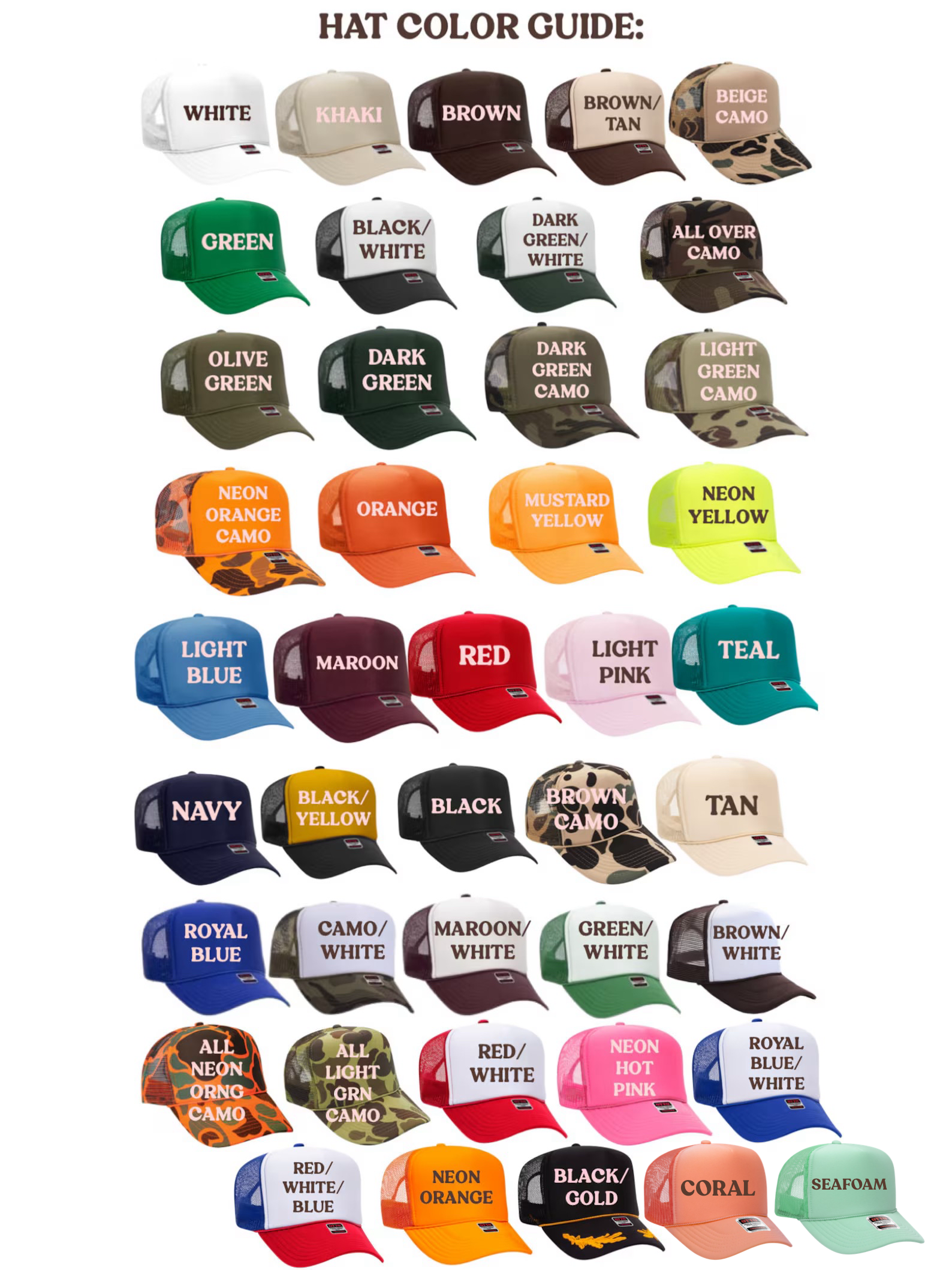 Hats are either Otto or Nissan brand. Please reach out with any questions for a specific hat color!