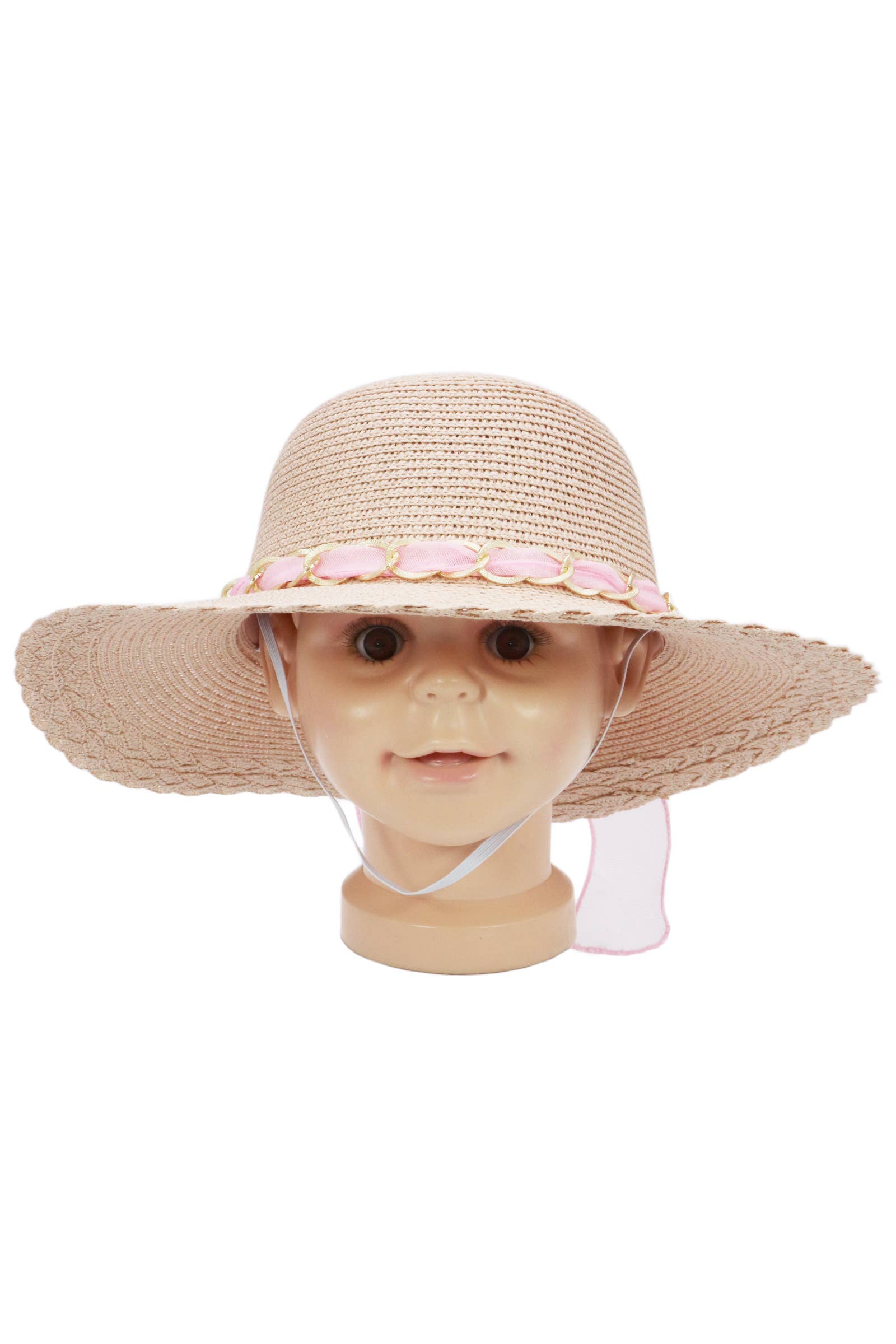 Kids Gold Chain Chiffon Ribbon Tight Weave Scallop Hem Paper Straw Floppy Sun Hat