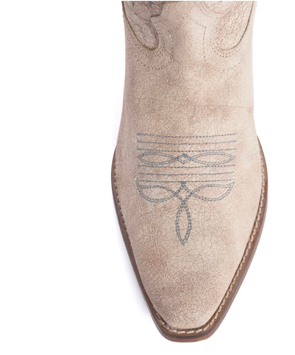 Embrace your feminine Western flair with these stunning embroidered boots. Crafted from premium leather, the vamp (top) and shaft are lavishly adorned with intricate white "floral and feather" embroidery. The ornate threadwork creates an eye-catching motif across the entire boot. With a traditional pointed toe and cowboy heel, these boots blend authentic cowgirl style with a chic, contemporary twist. You'll turn heads wherever you go, whether riding the range or strolling city streets. Saddle up in stand-out style with this fashionable take on the classic Western boot!